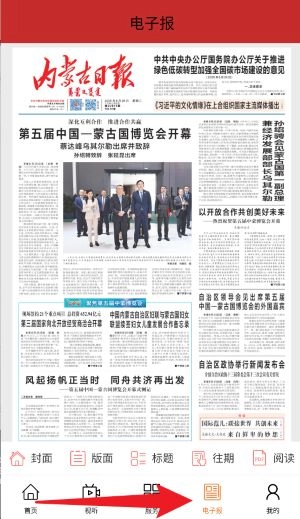 3、点击电子报板块,即可浏览《内蒙古日报》数字报纸,支持在线阅读封面、版面、标题以及往期报纸内容。
