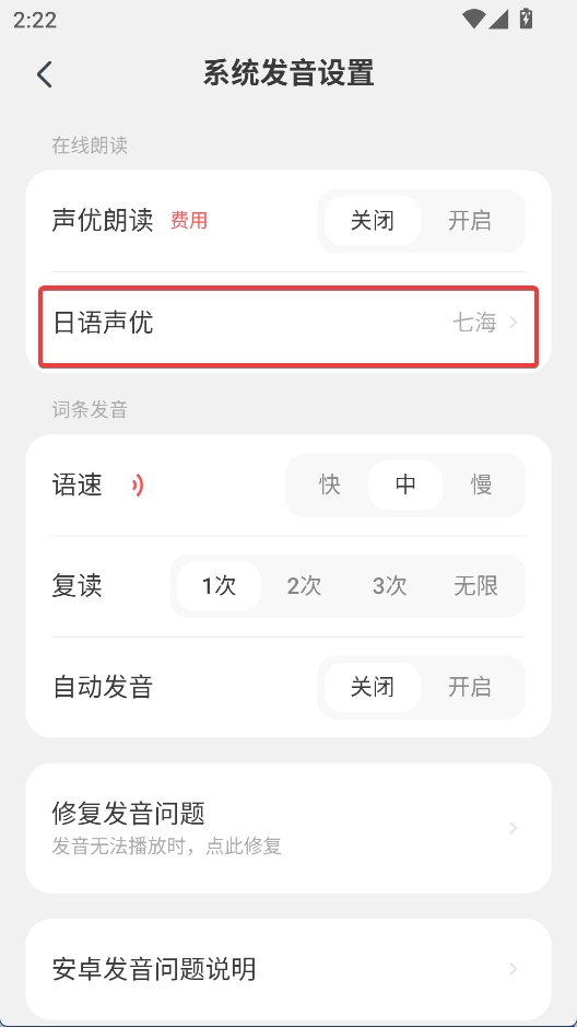 3、在发音设置中点击日语声优进行切换