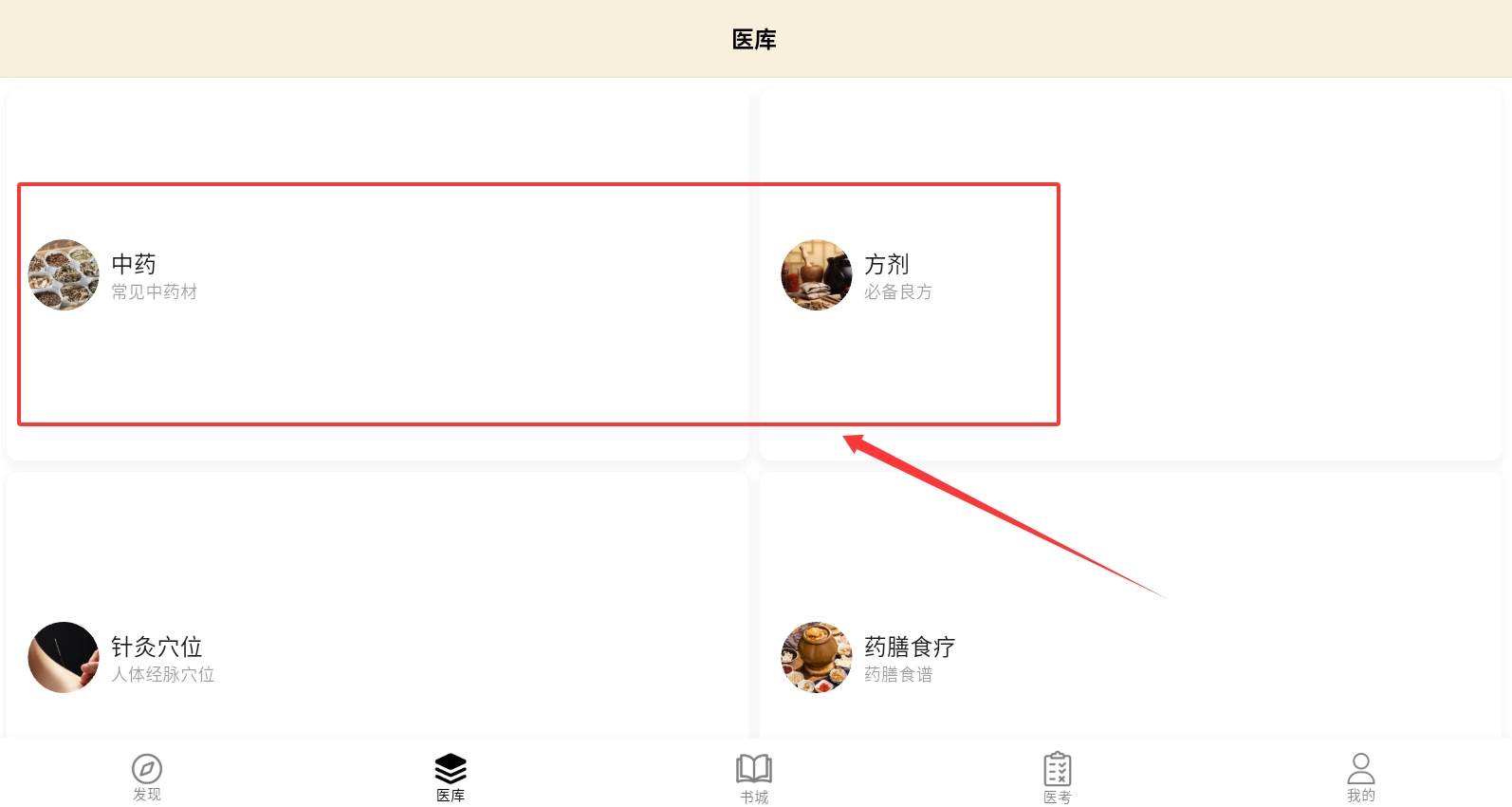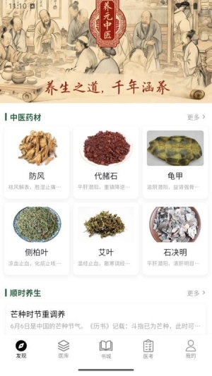 1、打开软件后,在底部找到“发现”图标,轻轻点击就能进入中医药材的探索界面,那里展示着各种药材的图片和介绍哦。