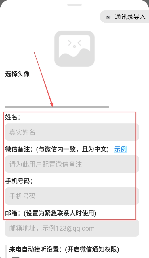 3、依次填写姓名、微信备注、手机号码等联系信息内容详情,完成信息录入确认无误后准备保存。