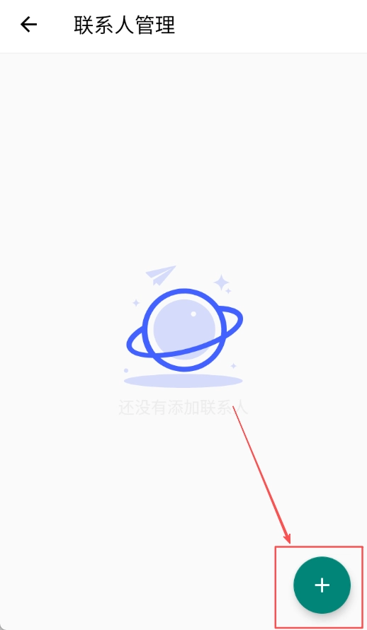 2、进入联系人管理页面后仔细查看内容信息,点击右下角的加号按钮进入信息填写界面操作。