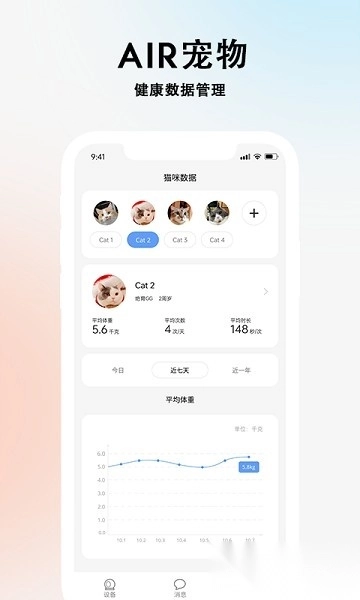 2. 健康数据管理:可自动记录每只猫咪的体重变化情况与如厕频率,并生成周期性的健康报告;