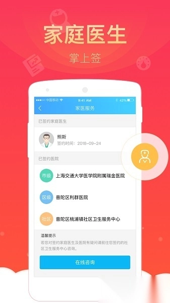 家庭医生线上签:在线与家庭医生签约,获取专业健康指导。