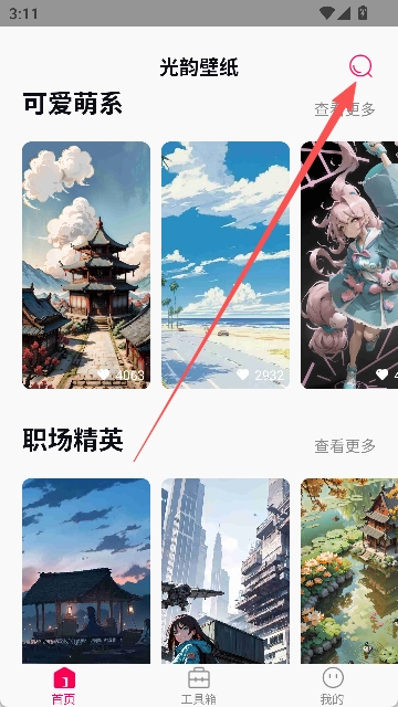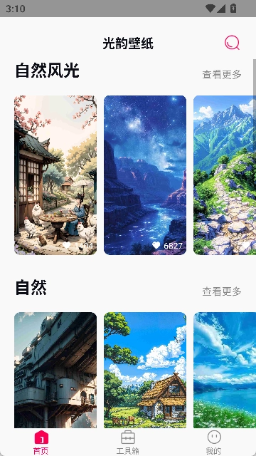 光韵壁纸的界面设计简洁大方,各个板块分区清晰明了,使用过程中没有广告的干扰,同时还配备了搜索功能,让你能够轻松找到心仪的壁纸。此外,它自带的几个实用小工具也十分好用。