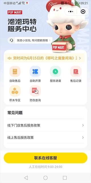 2、进入泡泡玛特服务中心,点击售后记录就能查看订单