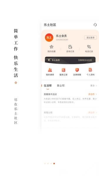 乐土是面向社区居民打造的综合性生活服务平台,整合了多元线上功能与专业服务支持。平台既提供便捷的日常问题解决途径,又能对接专业律师团队,为用户带来一对一法律咨询及专项服务;借助公益互助体系,用户可通过善行兑换所需资源,助力构建信任型社区生态。同时,平台汇聚生活事业相关资源,推动高效协作,并以法律保障为依托,保障交流的安全可靠。若想体验,欢迎通过鸟获取安装包,开启高效生活新体验。