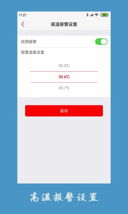 监测体温要配合专用智能体温贴硬件,利用低功耗蓝牙4.0技术来稳定传输数据;可自定义高低温报警的阈值,一旦体温异常会即时推送提醒;动态折线图能直观呈现体温的波动规律;历史记录会完整保存,还支持按照日期查询过往的数据。