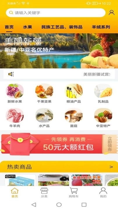 美丽新疆App是专注于新疆农产品及特色商品的电商销售平台,主要经营新疆本地的各类产品,涵盖地产水果、干果、牛羊肉、水产、禽肉蛋、乳品、特色花茶、休闲零食、酒水饮料、粮油米面,以及新疆特色工艺品、名优特轻工商品和装饰品等。此外,平台还提供中亚特产,包括干果、食品、酒水饮料和工艺品。该平台面向中国大陆各省市自治区的广大消费者,凭借丰富的商品种类、严格的品控体系、规范可靠的生产厂家以及精心优选的商品,致力于让内地更多普通大众以实惠的价格,享受到新疆高品质的安全食品与农产品,同时通过拓展销售渠道,进一步推广新疆的优质特色商品。