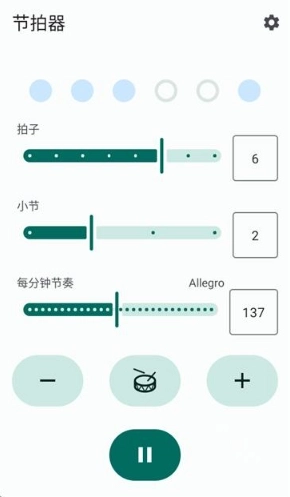 节拍设置:可自定义每小节的拍数(拍子)以及循环的小节数量。