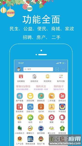 --整合房产、招聘、美食等多元板块,重要信息分类清晰;