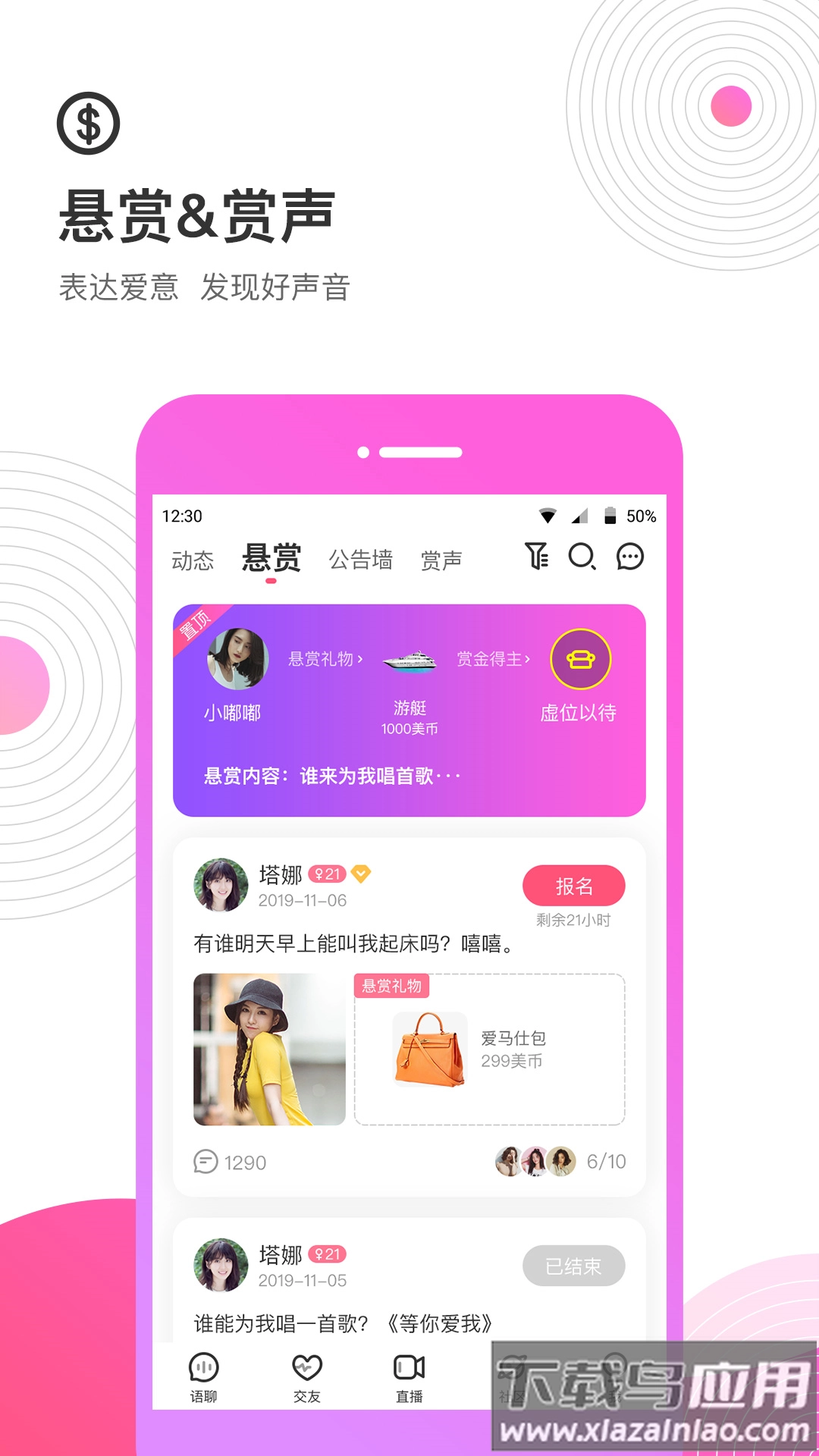 悬赏&赏声:借助任务发布发掘优质声音,以礼物传递欣赏之情。