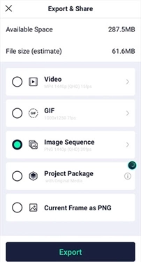 导出的文件格式包含视频(Video)、动态图(GIF)、Image Sequence(图像序列)等类型。