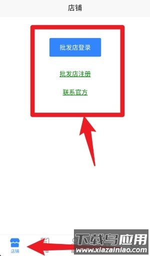 2、进入“店铺”栏目后,你可以进行批发店的登录或注册操作,要是需要店铺管理方面的支持,也能通过该栏目联系获取。