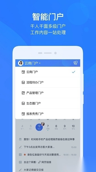 移动端支持背景图的个性化设置,能够依据部门来展示不同的主题界面。
