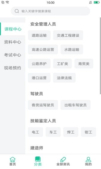 安装完成后,用户可通过手机号便捷完成注册流程;首页支持按工种进行筛选,智能推荐相关课程;个人中心内可随时查看学习记录与错题集;搜索框具备模糊匹配功能,能精准定位课程名称;专业板块允许用户定制关注领域的资讯内容。
