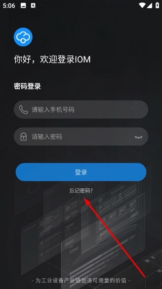 1、在IOM平台的登录界面,点击“忘记密码?”选项,即可进入密码找回的信息填写页面。