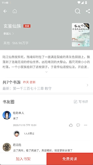 1、在作品详情界面点击免费阅读
