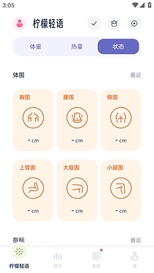 4、打开柠檬轻语首页后,能够记录每日的体重、热量、状态等信息。
