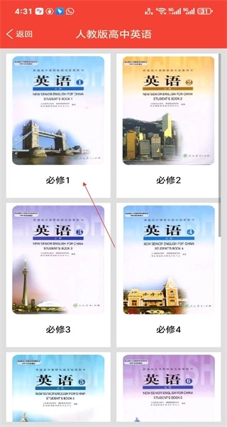 2、进入人教版高中英语页面后,找到必修1到必修6的教材封面,点击必修1的封面即可进入相应的课本页面。