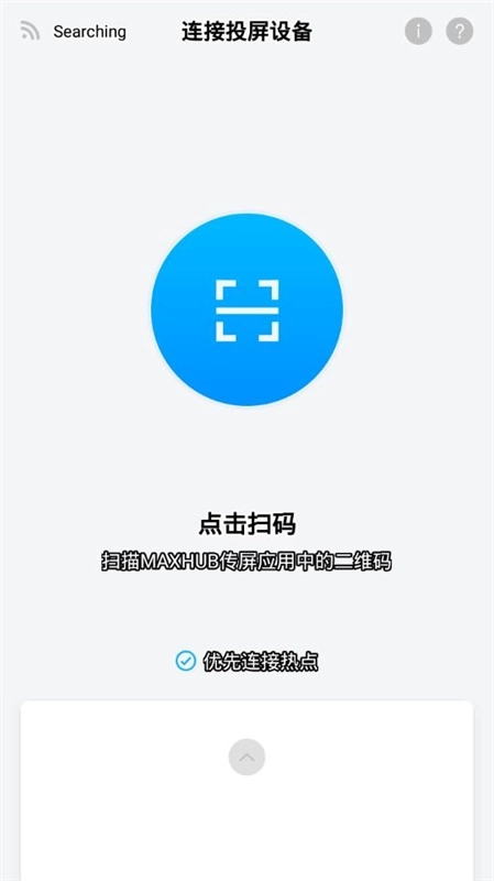 2、把手机设备和会议平板连接到同一个网络,接着打开手机上的传屏助手,选择扫码连接的方式。