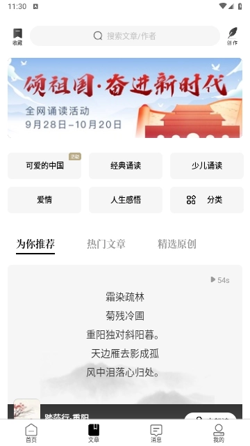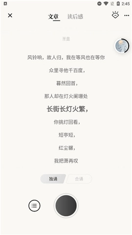 诗词创作板块:用户能够上传个人原创的诗词作品,供其他用户进行朗读演绎与互动交流。