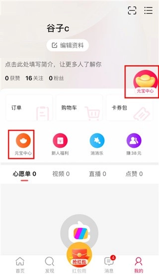 1、首先,新用户需要先点击点淘右下角的“我的”,接着再点击“元宝中心”就能进入相应页面了。