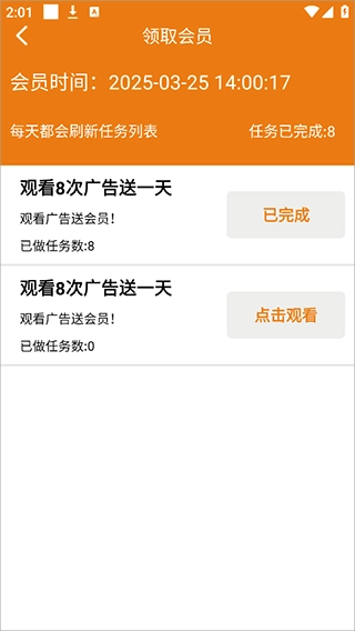 然后通过观看广告等任务来免费领取会员
