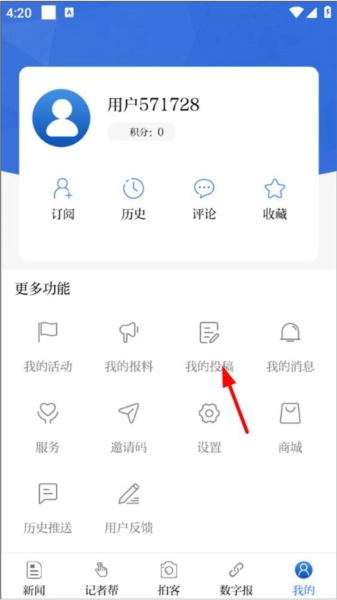 在个人中心页面,用户能够浏览已订阅内容、过往浏览记录、发布过的评论以及收藏的内容等;若想探索更多操作选项,可点击“我的投稿”按钮。