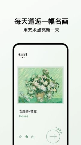 Arrrt具备桌面小组件功能,用户解锁全部画作后,可查看完整专题、高清名画与专享艺术图标等内容,借助这些功能,能充分沉浸于艺术之美中。Arrrt不只是一款绘画类应用,更像是一座可随身携带的艺术馆。用户通过该软件,能在任何时间、任何地点欣赏到精致的画作,同时了解每幅作品背后的故事与创作理念,让艺术鉴赏自然融入日常生活。