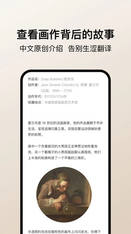 Arrrt是一款实用的绘画艺术服务平台软件,有“随身艺术馆”之称。这款应用的内容由中文编辑精心撰写,专注于分享画作背后的理念、风格与故事,致力于让艺术鉴赏融入日常生活。用户可以尽情探索巴洛克、抽象主义、学院派、印象派、文人画、浮世绘等多种艺术流派,通过软件不期而遇地接触到丰富多元的艺术经典。