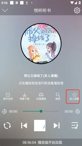 4.在播放页面,点击加入收藏即可,在我的书架即可查看。