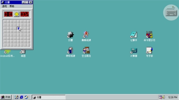 完整整合了Windows 98具有标志性的应用程序,像扫雷、纸牌、画图工具、计算器以及记事本之类的都包含在内。