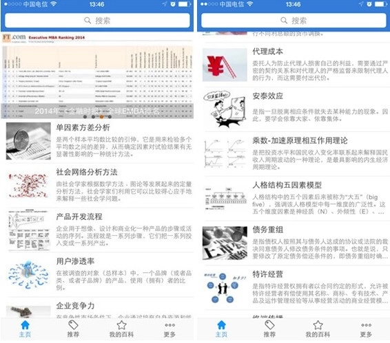MBA智库百科应用和百度百科有些相似,不过它在设计覆盖的领域方面不算特别全面,但在经济管理这个领域,内容却十分丰富,差不多包含了经济管理方面的所有知识。小编对一些法律知识的解读特别感兴趣。