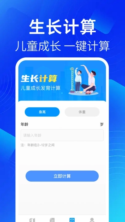 4、最后还附加了一个小功能,能够计算儿童成长过程中的发育情况,直接输入身高和体重即可,马上就会反馈发育情况!