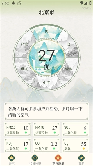 4、涵盖了详尽的空气质量状况,同时提供了贴心的生活建议;