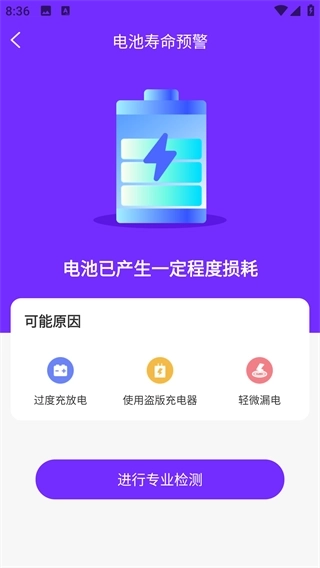 2、若电池发生过度充放电、使用非正版充电器或存在轻微漏电等状况,系统会发出预警,提示用户尽快采取应对措施;
