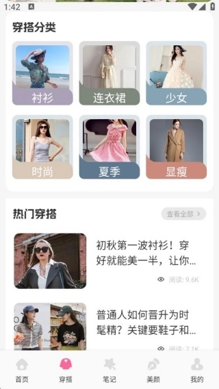 3、提供的穿搭内容十分多样,用户可以通过分类找到自己喜欢的穿搭风格,同时也能看到热门的穿搭内容展示。