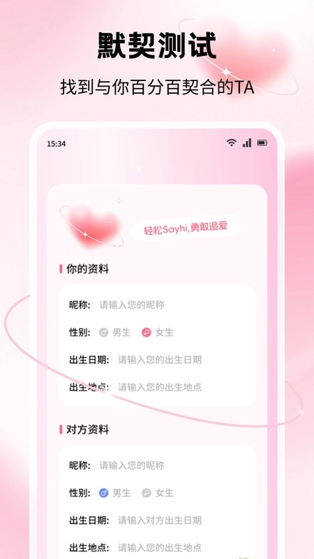 4、测试页面提供默契考验功能,借助检测来知晓你与他之间的缘分。